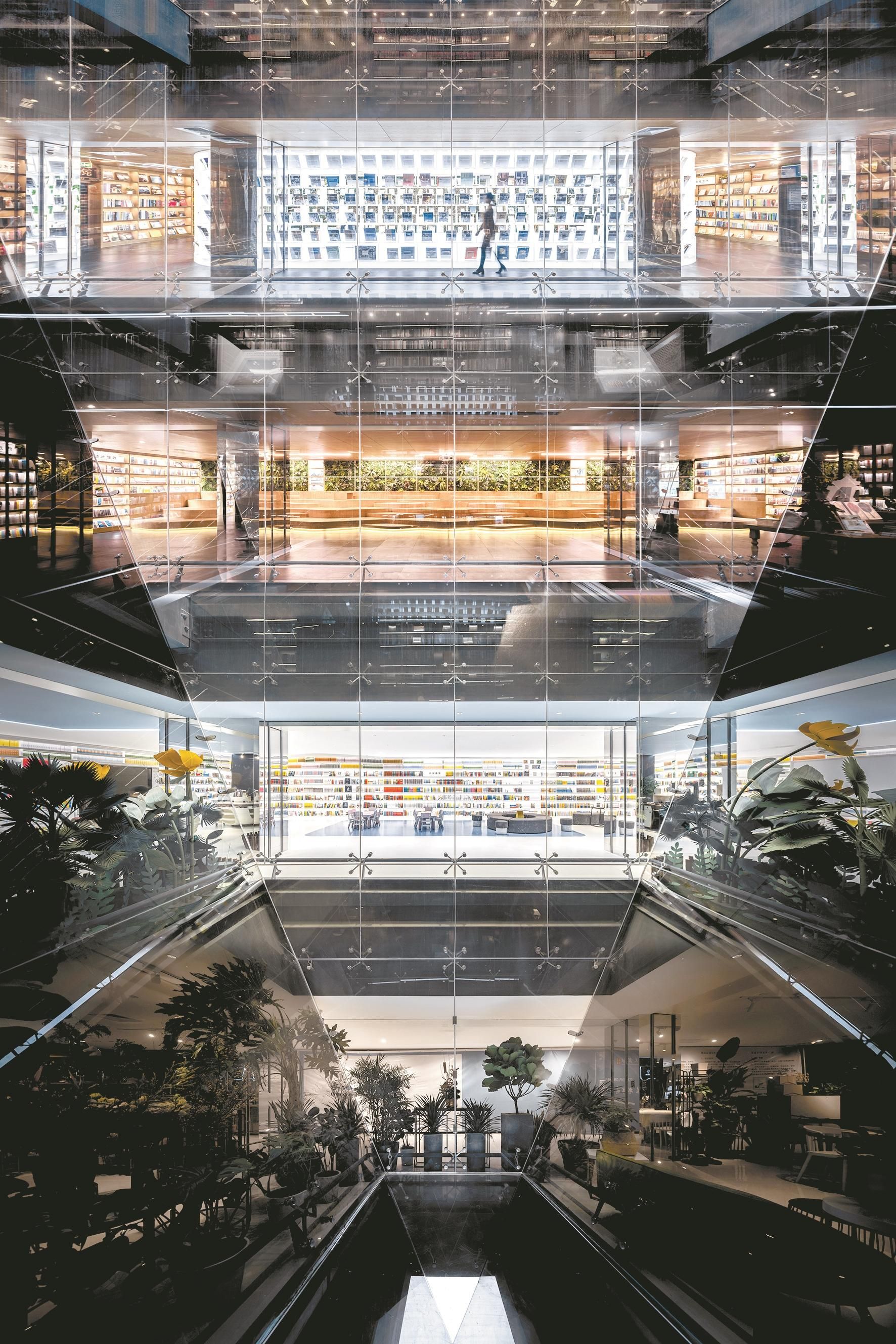“在書的世界里打開世界!”對于武漢來說,湖北省外文書店是伴隨了幾代人成長的文化地標(biāo)。這家成立于1980年,有著悠久歷史的品牌性書店,2019年歷經(jīng)兩年的升級改造,重裝歸來——外體空間設(shè)計“山外山”,成為中南路上不可忽視的美麗風(fēng)景,層疊的青山背后隱藏著一座因閱讀而充滿光和希望的城市;移步書店內(nèi),倒錐形的玻璃幕墻在中庭形成“V 型光錐”,猶如黑夜中的一盞文化明燈。天光云影輝映,光與每層樓異彩紛呈的主題文化嵌合,為這座文化與藝術(shù)的大樓注入一份雅韻,呈現(xiàn)一份明麗。