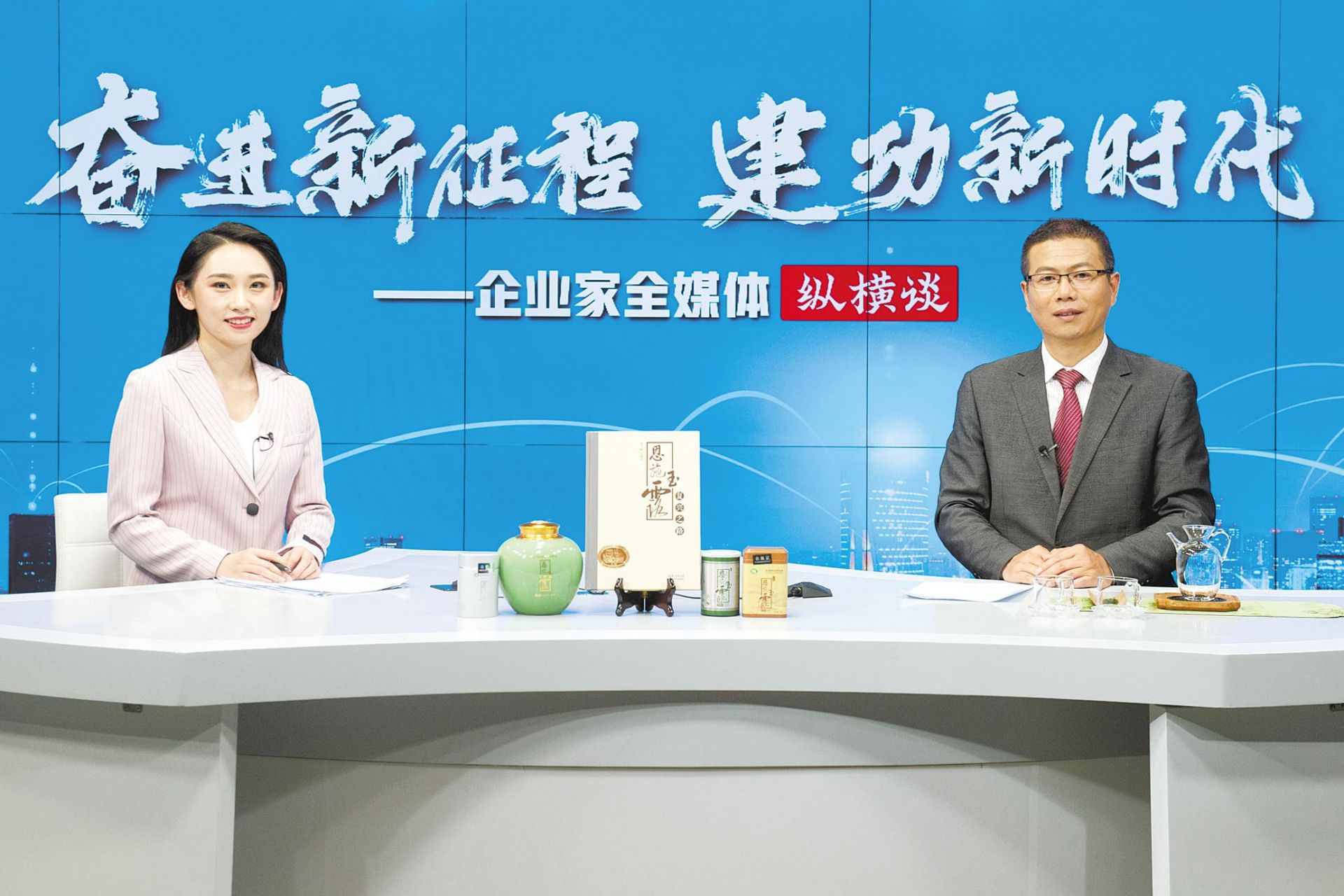 4月25日,潤邦國際富硒茶業(yè)有限公司董事長兼總經(jīng)理張文旗(右)做客湖北日報企業(yè)家全媒體縱橫談。 (湖北日報全媒記者 何宇欣 攝)