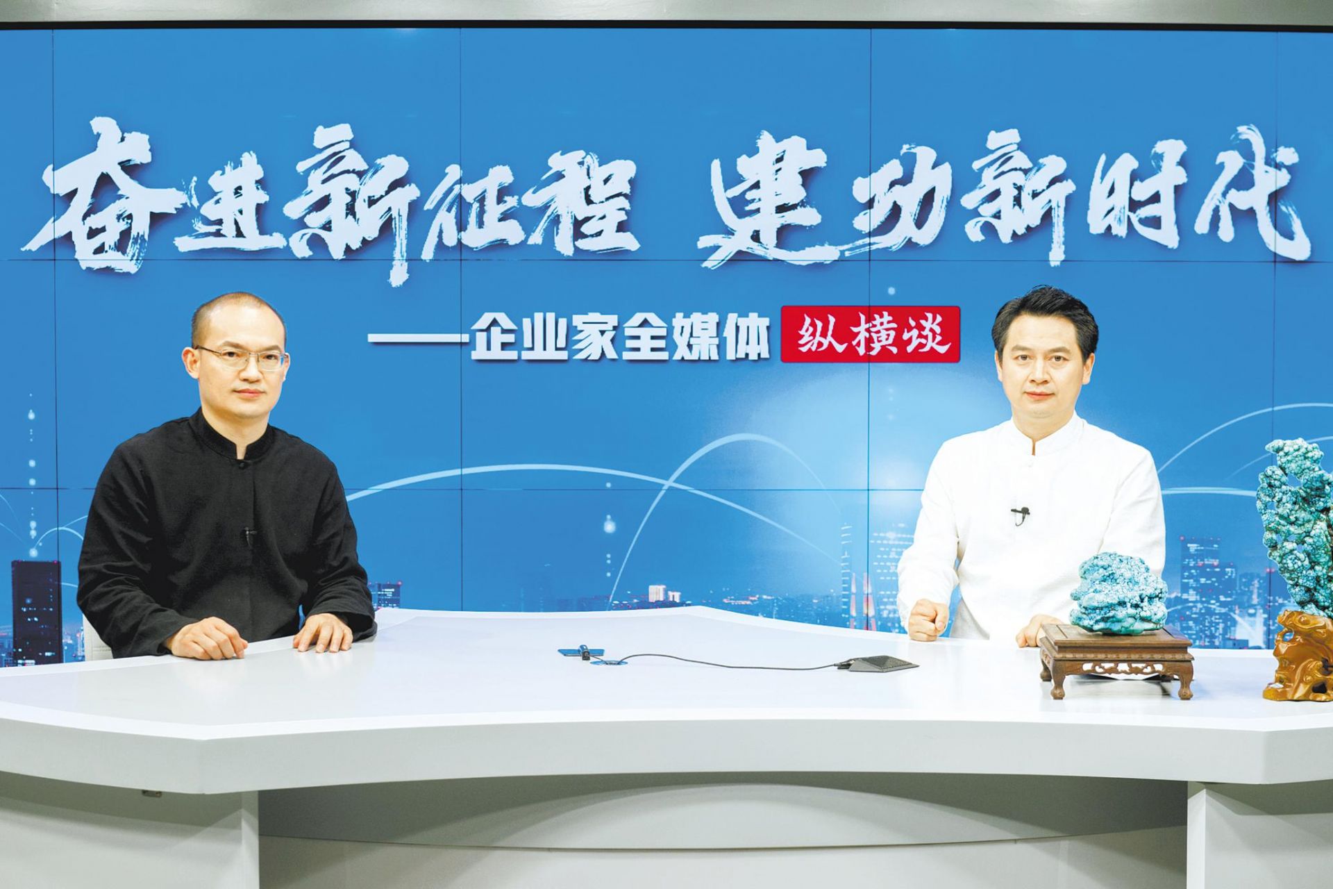 4月20日,十堰文旅體投資發(fā)展集團(tuán)有限公司黨委書記、董事長周義波(右)做客湖北日?qǐng)?bào)企業(yè)家全媒體縱橫談。 (湖北日?qǐng)?bào)全媒記者 何宇欣 攝)