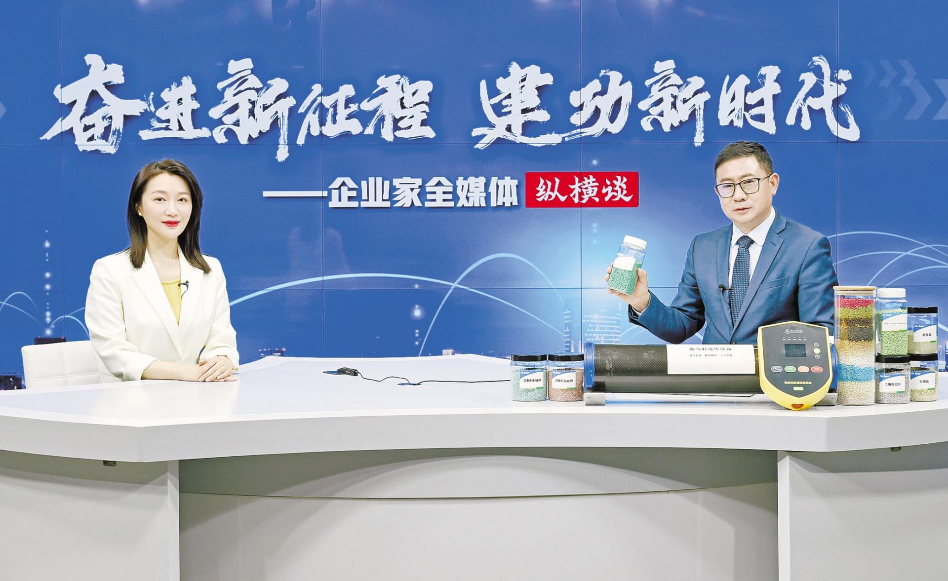 4月21日,湖北富邦科技董事長王仁宗(右)做客企業家全媒體縱橫談。 (湖北日報全媒記者 倪娜 攝)