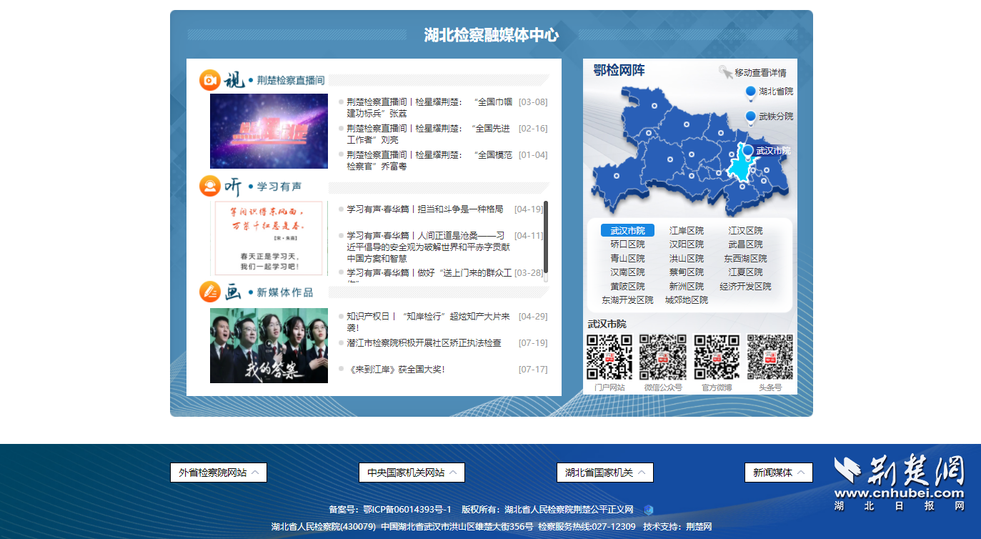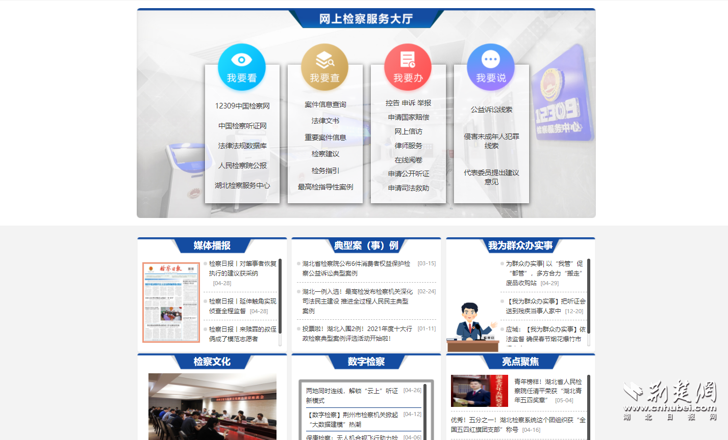 荊楚網(湖北日報網)訊(記者張揚)5月6日,網民張先生訪問湖北省人民檢察院門戶網站,發現網站已全新改版,他感受到,新網站帶來的各項體驗,均較以前有大幅提升。全新改版的不僅是省人民檢察院網站,湖北省130家檢察院新版門戶網站暨全省一體化檢察門戶網站集群于今年“5.1”國際勞動節正式上線運行。
