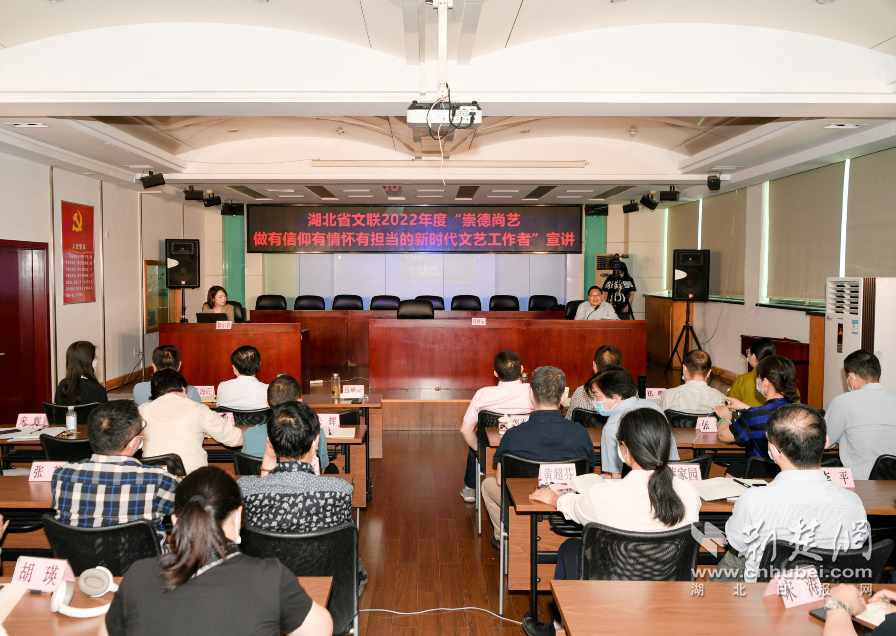荊楚網(湖北日報網)訊(記者張揚 通訊員何學英 王旭)5月7日,湖北省文聯舉辦2022年度“崇德尚藝 做有信仰 有情懷 有擔當的新時代文藝工作者”宣講活動。湖北廣播電視臺融媒體新聞中心主任、第五屆全國中青年德藝雙馨文藝工作者郭小容以《做黨和人民信賴的新時代記錄者》為題,分享體會。