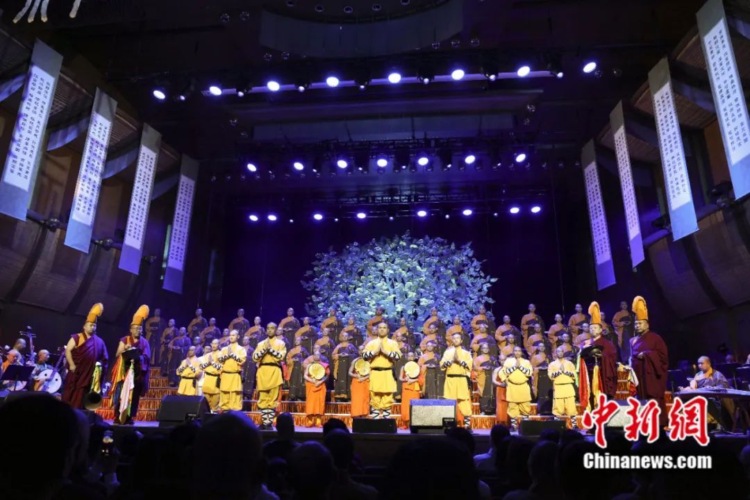 “祈福”中國佛教梵唄藝術(shù)音樂會在美國紐約林肯中心上演。中新社記者 廖攀 攝