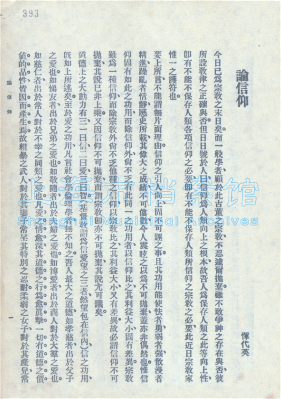 1917年,惲代英在《新青年》發(fā)表“論信仰”