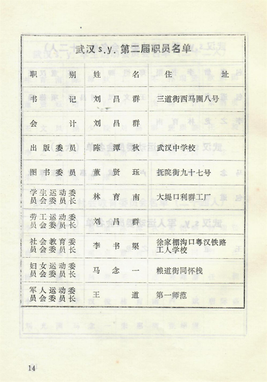 武漢S.Y.(社會主義青年團(tuán))第二屆職員名單
