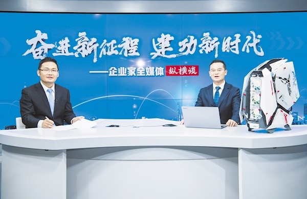 5月5日,湖北攀升電腦創始人、董事長陳孝軍(右)做客湖北日報企業家全媒體縱橫談。 (湖北日報全媒記者 魏錸 攝)