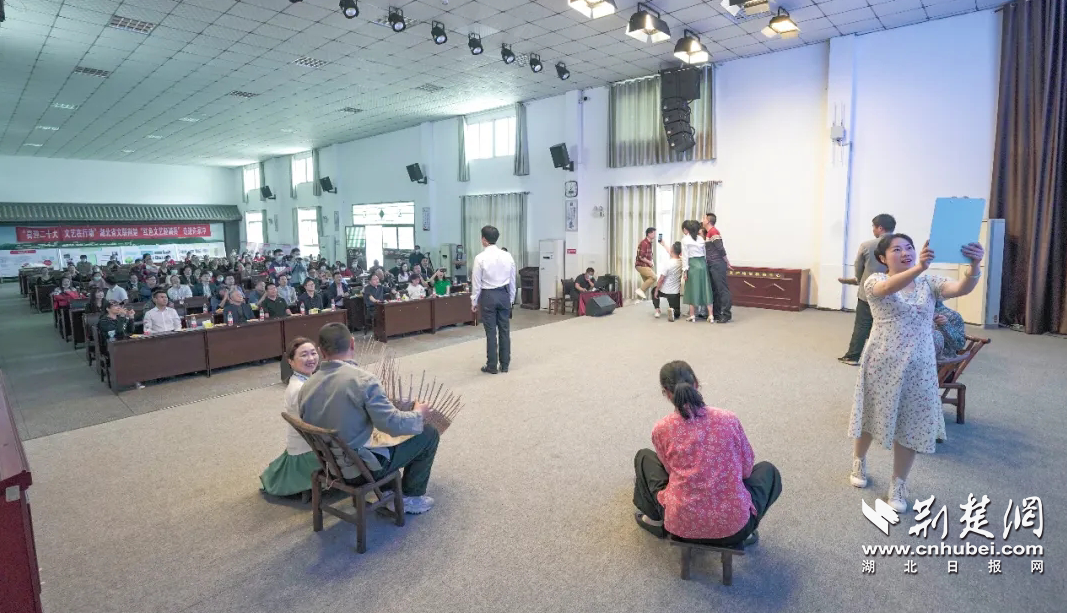 現場激昂的氣氛點燃了每個人的激情,采風團成員紛紛登臺,中國戲劇梅花獎獲得者楊俊表演黃梅戲《女駙馬》選段、中國戲劇梅花獎獲得者夏青玲表演楚劇《紅梅贊》、歌唱家楊娟演唱了歌曲《我們的時代》。謝東升、操奕恒、董研峰、鄒一娜、劉智鵬、胡途、陳涓、祝家家、陳冬梅、鄧宏穎等10余位著名歌唱家、朗誦藝術家、戲曲表演藝術家也以精湛的表演傳遞猇亭之美。