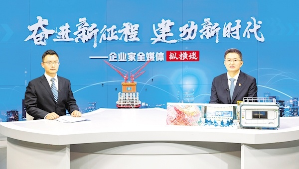 中建三局黨委副書記、總經(jīng)理李琦(右)做客湖北日?qǐng)?bào)企業(yè)家全媒體縱橫談。 (湖北日?qǐng)?bào)全媒記者 柯皓 攝)