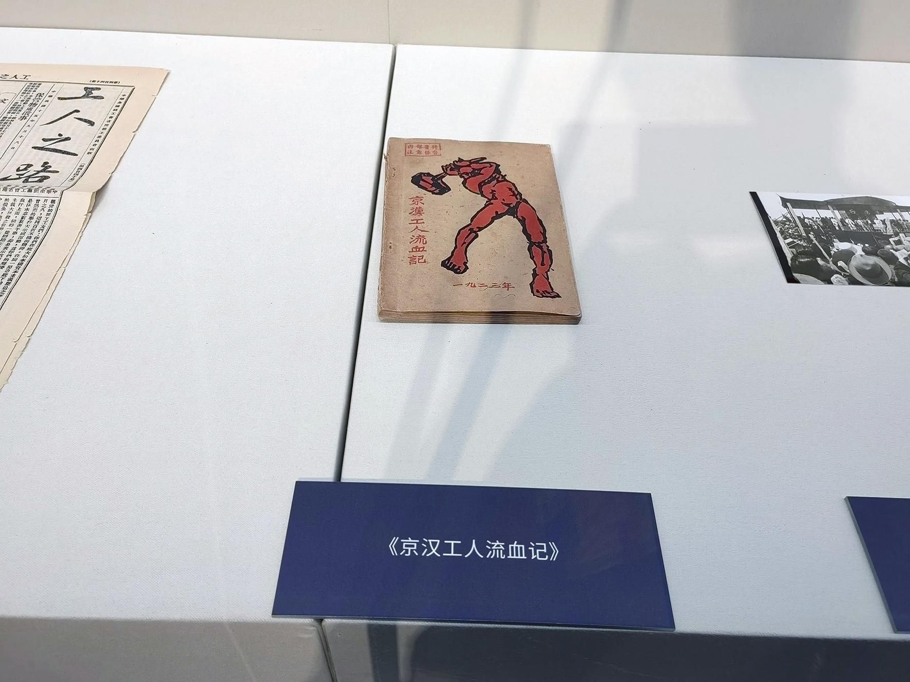 辛亥革命博物院策展人員胡偉,帶極目新聞記者看了一本《京漢工人流血記》的出版物。他介紹說,這是1923年3月北京《工人周刊》社出版的,作者文虎(即羅章龍)。這本書的封面上畫有一位體格強(qiáng)健的工人,高舉一把鐵錘,左方印“京漢工人流血記”七字書名,這本書是真實、詳細(xì)記載“二七慘案”全過程的重要文獻(xiàn)。中國勞動組合書記部北方分部負(fù)責(zé)人羅章龍目睹軍閥暴行后,奮筆撰寫了《京漢工人流血記》,全書共10萬字,成為研究中國工人運動史的珍貴史料,更是中國工人堅定的革命意志和堅強(qiáng)戰(zhàn)斗力的真實寫照。
