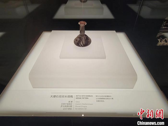 圖為展出的大理石花紋長(zhǎng)頸瓶。 阿琳娜 攝