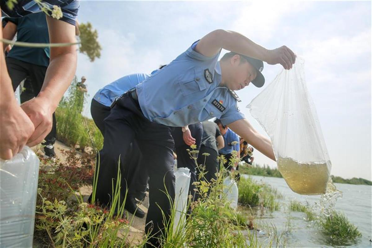 5月17日上午,在武漢經(jīng)開區(qū)鄧南街長江岸邊,一尾尾魚苗順著水流,歡快地游向遠(yuǎn)方。據(jù)了解,這是武漢市和仙桃市兩地漁政部門首次聯(lián)合開展增殖放流活動(dòng)。