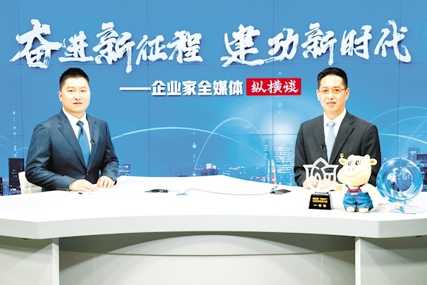 5月7日,武漢鋼鐵有限公司黨委書記、執行董事吳小弟(右)做客湖北日報企業家全媒體縱橫談。 (湖北日報全媒記者 何宇欣 攝)