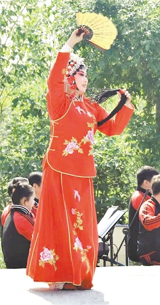 楊女士十年前從銀行內(nèi)退后,偶然一次江邊散步,看到有人拉二胡有人唱戲,也跟著二胡哼起小時(shí)候?qū)W的《朝陽溝》,被一頓猛夸,從此就愛上戲曲。