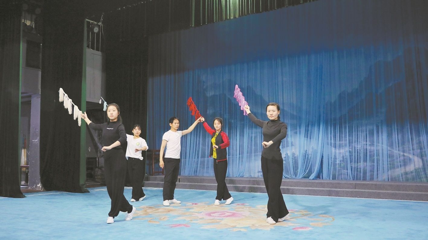 團(tuán)長王新民(右三)指導(dǎo)演員排練