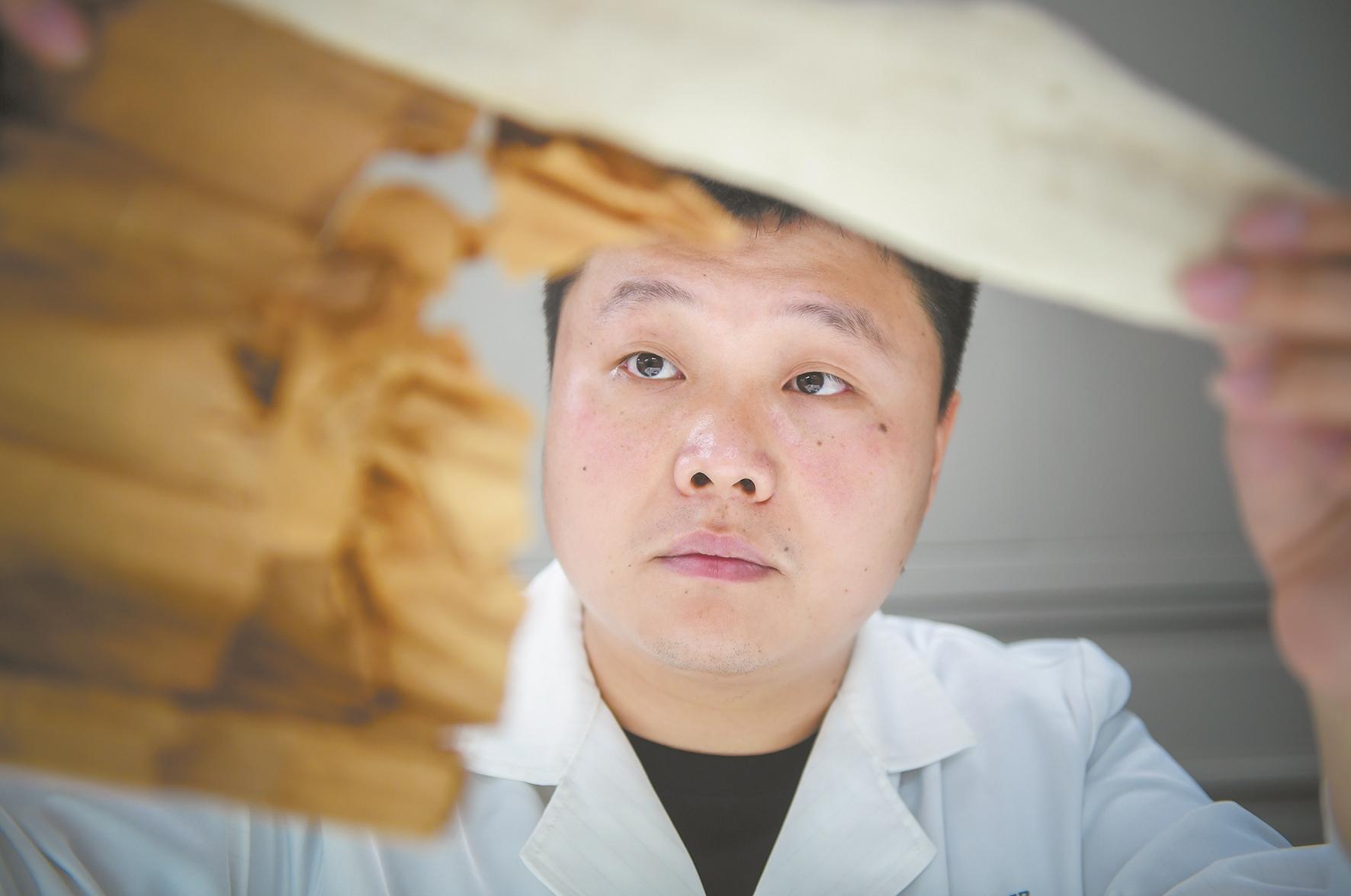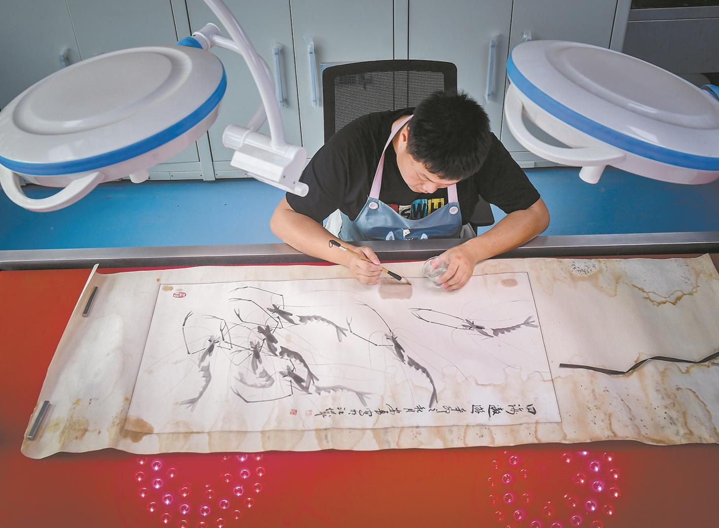 把愛好當成工作,要練就文物修復的絕活。修復古代書畫,需要幾十個步驟,不能出絲毫差錯。為一幅畫花費一兩年時間,對趙曉龍來說,已經司空見慣。一幅清代畫家、“揚州八怪”之一黃慎的紙本人物畫像在歷史上被修復多次,當他開始對它進行修復前,畫作已經出現十幾處斷裂痕跡,已經無法完全打開,經過3年小心翼翼地耐心處理,如今,這幅畫已經修復完成。他說:“據簽條記載,這幅畫最近一次修復在上世紀40年代,希望在我手中,它將是最后一次修復?!?/p>