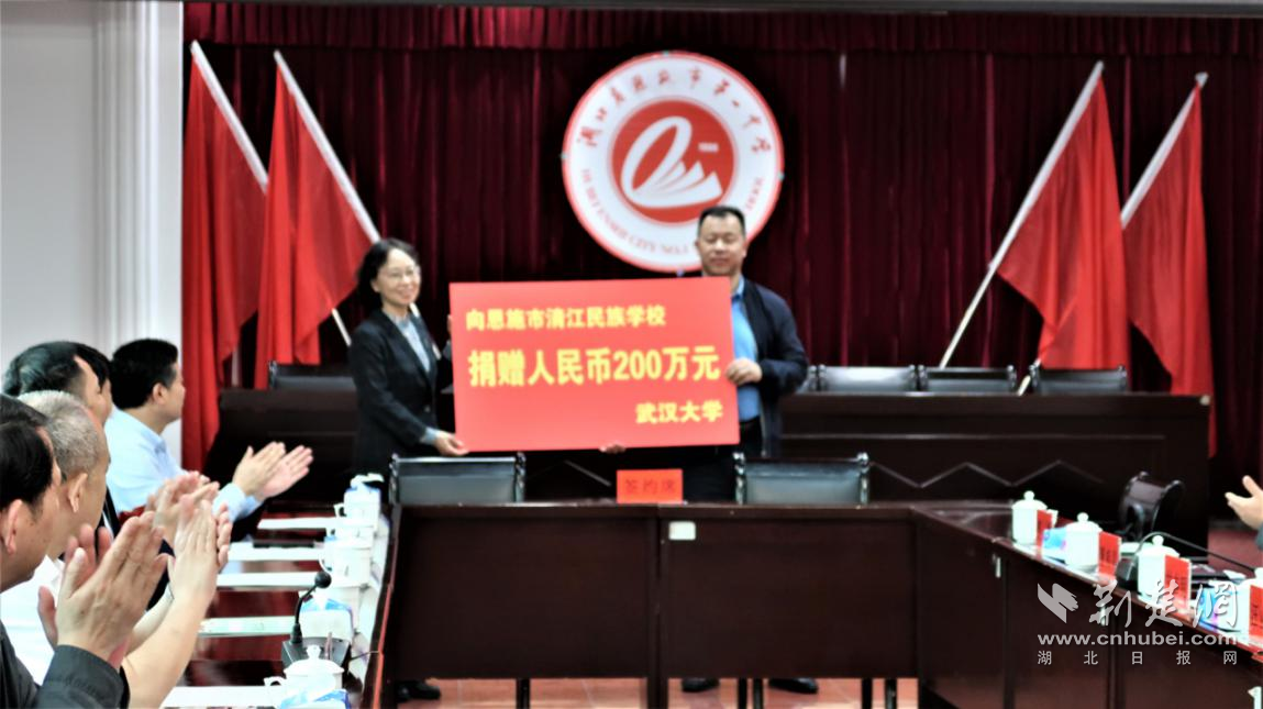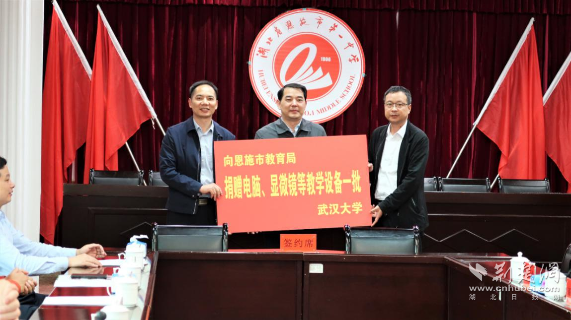當天的捐贈簽約儀式上,武漢大學副校長吳平,代表武漢大學教育發(fā)展基金會向清江民族學校捐贈200萬元;武漢大學校長助理徐東興、實驗與設備管理處處長畢衛(wèi)民,代表武漢大學向恩施市教育局捐贈電腦、顯微鏡等教學設備;武漢大學恩施校友會執(zhí)行會長、恩施慧宜眼科醫(yī)院院長楊方列,向恩施市一中捐贈100萬元用于開展愛眼護眼活動。