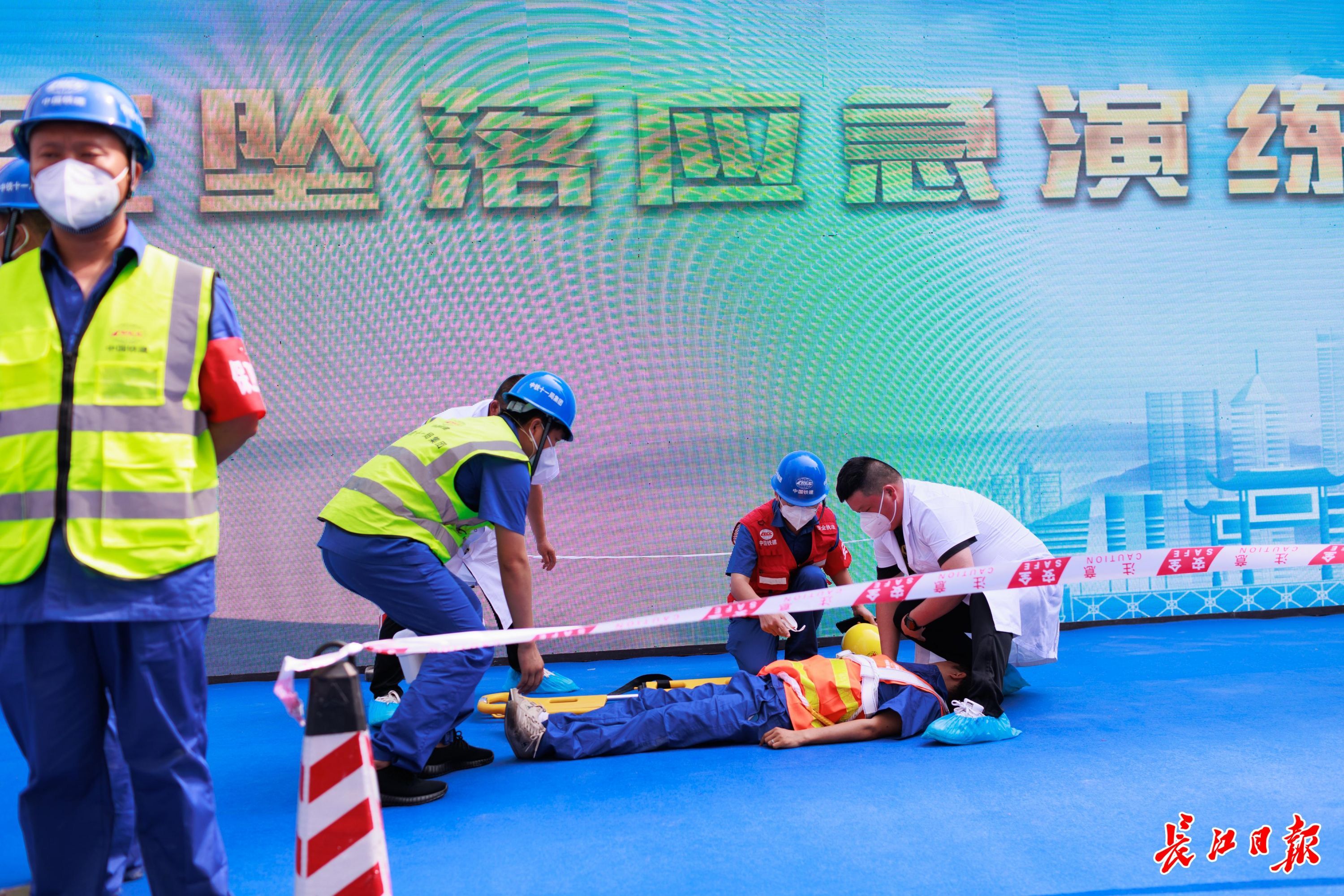 長(zhǎng)江日?qǐng)?bào)大武漢客戶端5月31日訊(記者施政 通訊員張鶯) 5月31日上午9時(shí)許,在江岸鐵路和諧家園二期項(xiàng)目工地上,一場(chǎng)高處墜落應(yīng)急演練正在進(jìn)行。當(dāng)一名工人失足從腳手架上不慎墜落后,應(yīng)急救援預(yù)案迅速啟動(dòng),通訊警戒、醫(yī)療保障等應(yīng)急救援小組分工明確、處置有序,有效檢驗(yàn)了企業(yè)應(yīng)急預(yù)案的科學(xué)性和可操作性。當(dāng)天,江岸區(qū)安全生產(chǎn)月啟動(dòng)儀式在這處項(xiàng)目工地上舉行。