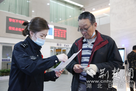 武漢公安出入境值班民警正在協(xié)助市民辦理相關(guān)業(yè)務(wù)。通訊員供圖。