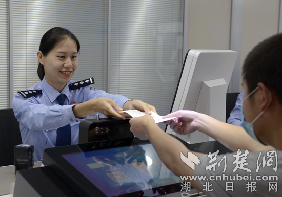 武漢公安出入境窗口民警正在辦理相關(guān)業(yè)務(wù)。通訊員供圖。