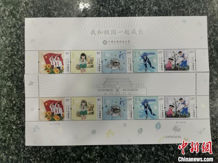《我和祖國一起成長》特種郵票?!≈袊]政集團(tuán)有限公司烏魯木齊市分公司供圖