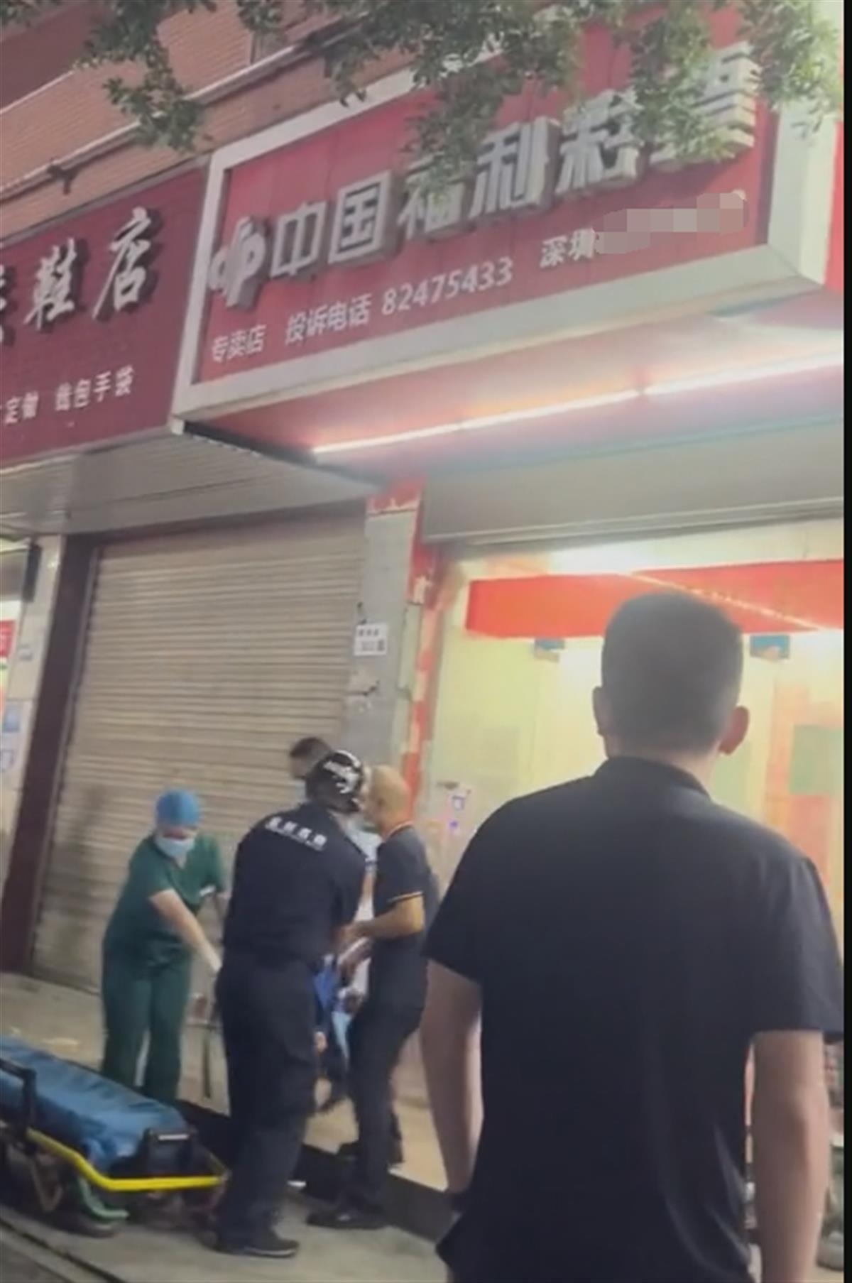 4日晚,視頻拍攝者王女士(化姓)告訴極目新聞?dòng)浾撸掳l(fā)深圳龍崗園湖路。5月31日晚,她正在店里忙,突然聽到附近彩票店有動(dòng)靜,出門看到有一男子正被人抬出了來,送上了救護(hù)車。具體發(fā)生了什么,她并不清楚。