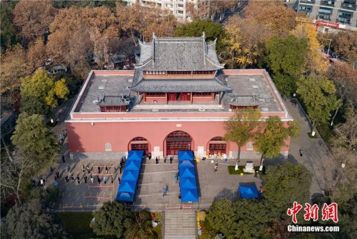 2021年12月,江蘇省南京市,市民在一處核酸檢測點進行核酸檢測。中新社記者 泱波 攝