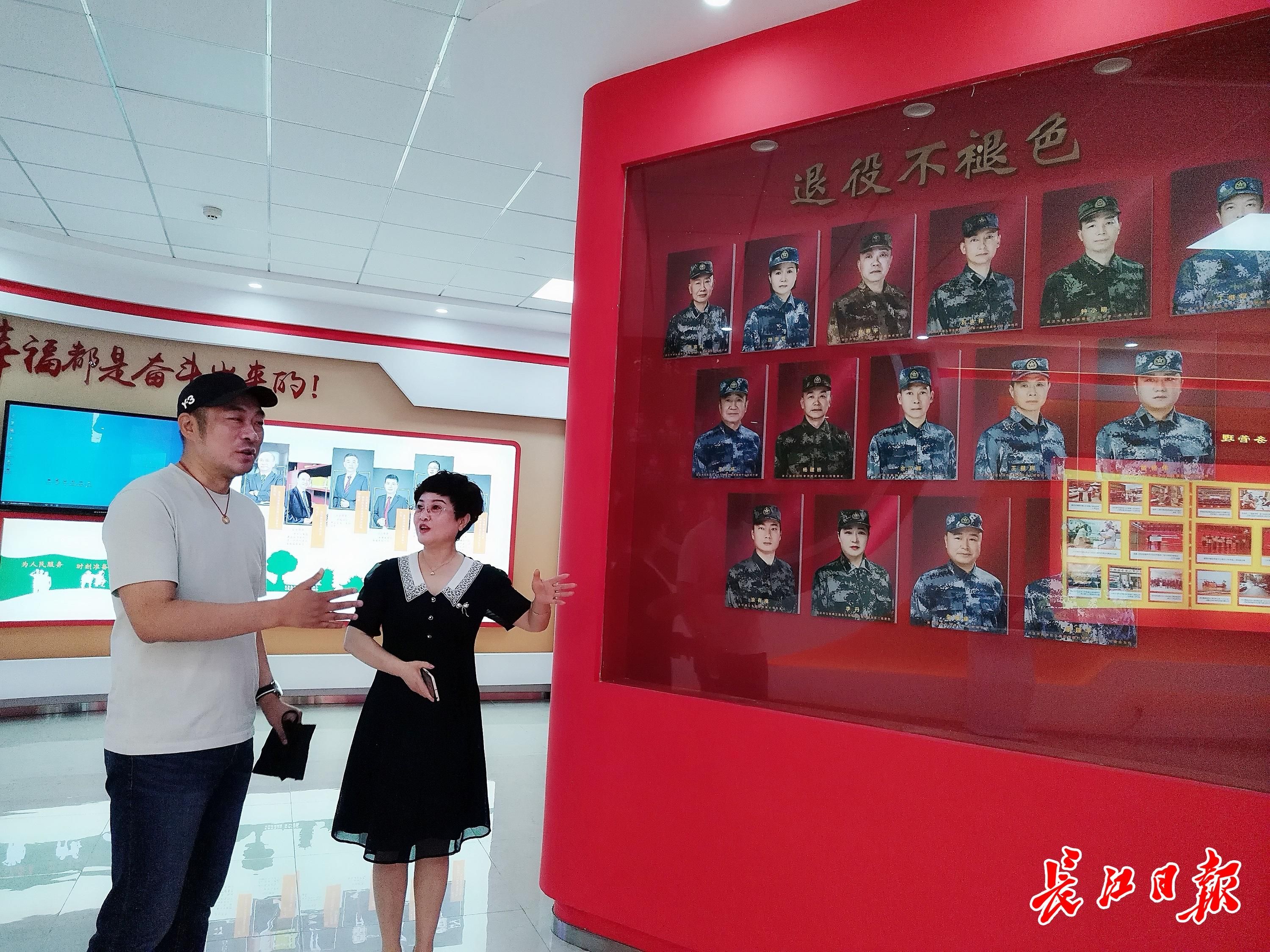 羅志(左)參觀武漢市關愛退役軍人協會展廳。記者陳衛東 攝