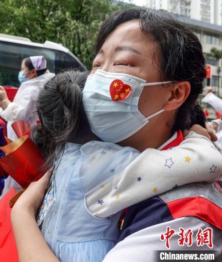 “聽聞遠方有你,動身跋涉千里……”就在大家沉浸在團聚的喜悅中時,一聲稚嫩甜美的歌聲傳來,援滬隊員沈超群10歲的女兒唱著《聽聞遠方有你》,手捧鮮花尋找著人群中久別65天的母親——醫院為援滬英雄們精心準備的,隆重而又熱烈的“歡迎回家”儀式拉開序幕。