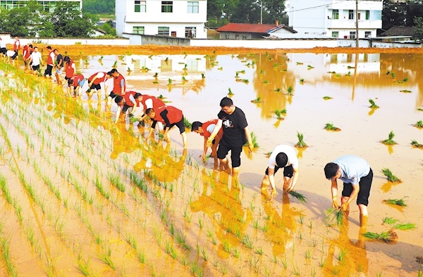 6月2日,竹山縣寶豐鎮政府組織機關黨員干部到曹家灣村開展“黨員干部下基層 助農插秧暖民心”活動,這是該鎮抓實抓細黨員干部“下基層、察民情、解民憂、暖民心”實踐活動的一個縮影。 (視界網 朱本雙 王平 攝)