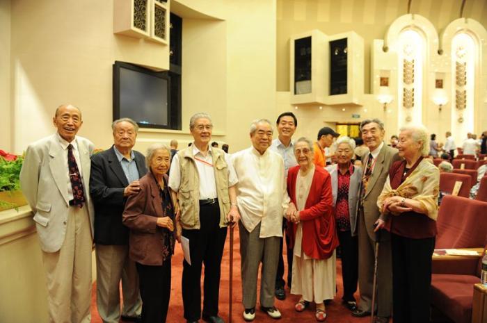 圖為北京人藝60周年院慶活動時,著名表演藝術家朱旭、宋垠、狄辛、藍天野、朱琳、胡宗溫、蘇民、楊薇、濮存昕與藝術大師范曾先生在一起。