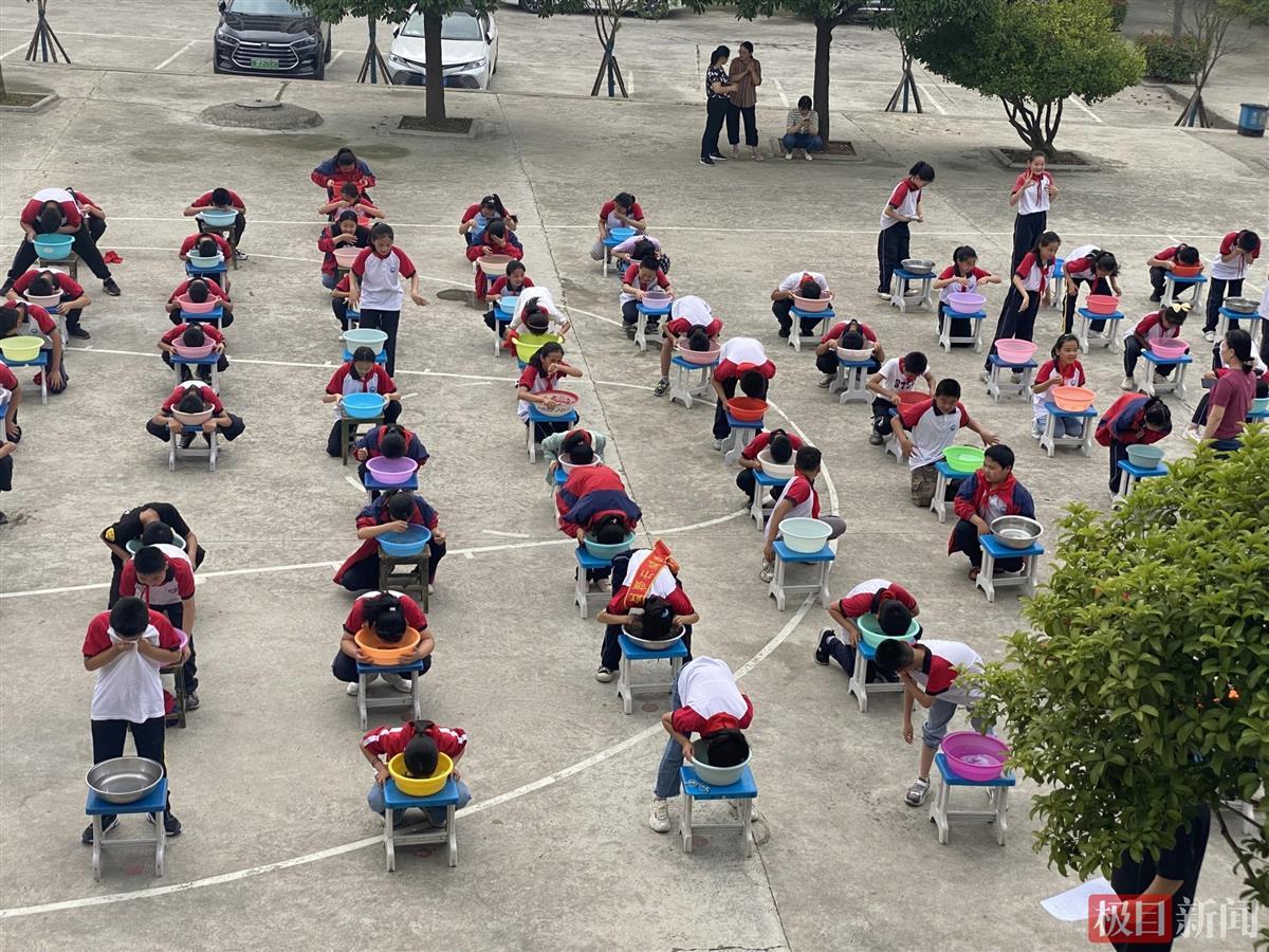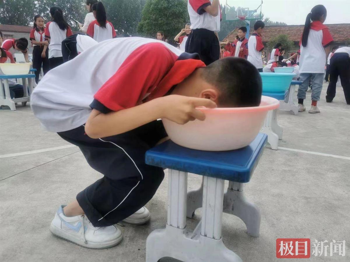 為了讓學生們直觀了解“溺水”行為過程,學校通過水盆憋氣的方式,讓學生把臉埋在盛滿水的盆中,真切體驗“溺水”的感覺。參與體驗的學生直呼:“喘不上氣,太難受了!再也不敢去河邊游玩了!”