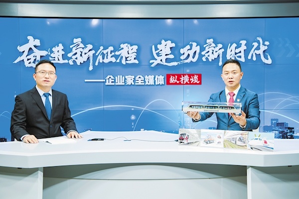 5月31日,襄陽國鐵機電股份有限公司董事長曾建勇(右)做客湖北日報企業家全媒體縱橫談。(湖北日報全媒記者 魏錸 攝)