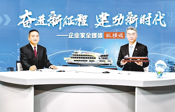 6月1日,中國長江航運集團黨委副書記、總經(jīng)理劉振華(右)做客湖北日報企業(yè)家全媒體縱橫談。(湖北日報全媒記者 朱熙勇攝)