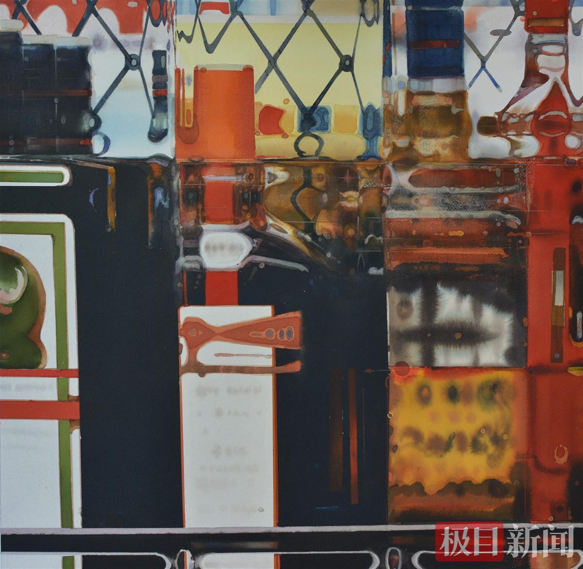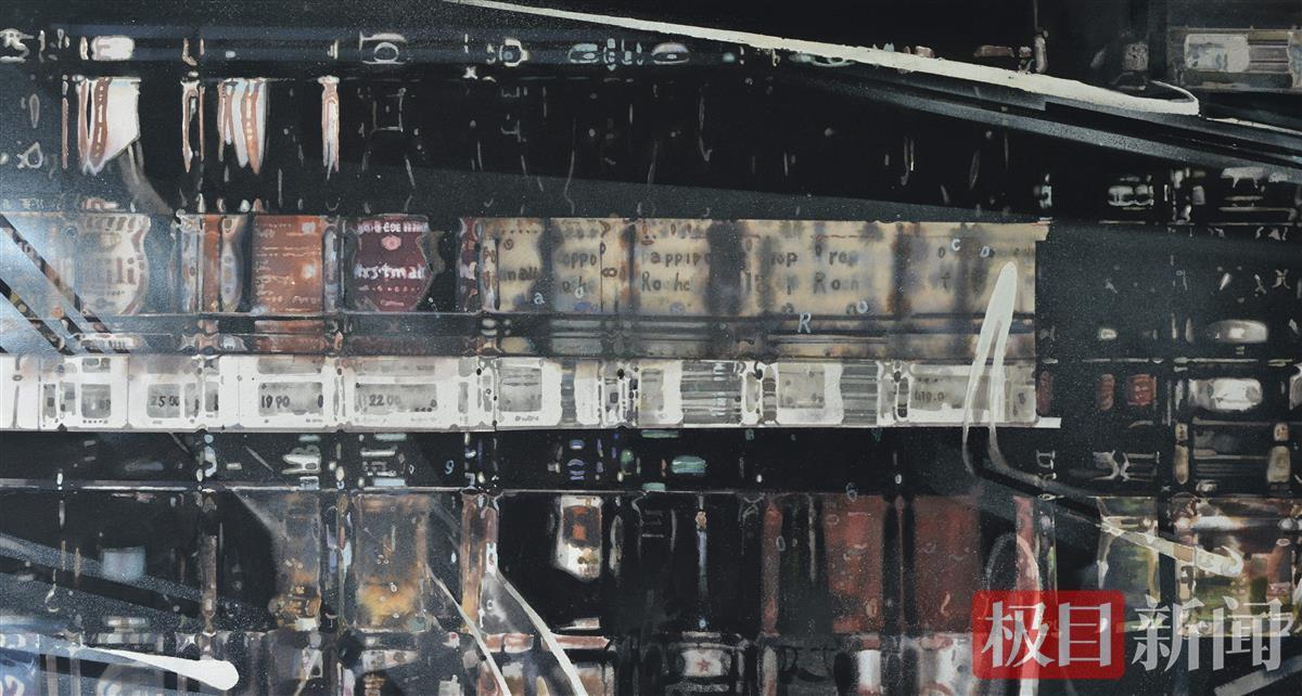 李寧:諸相非相,這個(gè)酒瓶系列,是希望大家能夠通過燈紅酒綠的外相,看清事情和生活的本質(zhì),從快節(jié)奏的表象中窺視慢節(jié)奏的生活,讓自己的心能夠慢下來(lái)。受湯湖美術(shù)館館長(zhǎng)王心耀先生的邀請(qǐng)參展,我就在想,是不是應(yīng)該拿一個(gè)新的系列出來(lái)展覽,所以我一直在思考,如何畫一種新的題材、新的樣式、新的符號(hào)和新的形象,既能和船系列、花卉系列保持一定距離,又能讓人眼前一亮、耳目一新。我琢磨了很久,有一天逛超市,我無(wú)意中看到洋酒瓶在燈光下有一種特別的排列組合,特別有形式感和節(jié)奏感。我把這個(gè)場(chǎng)景記錄下來(lái),回到工作室后就開始畫小稿,嘗試運(yùn)用新的技術(shù)和材料來(lái)畫這個(gè)酒瓶系列。我甚至嘗試了不常規(guī)的技術(shù)和方法,在構(gòu)圖、選材和色彩的搭配上都做了一些主觀的嘗試和變化。這個(gè)系列雖然才十幾張,但表達(dá)了我的一種堅(jiān)守。作為一個(gè)藝術(shù)家,在當(dāng)下的生活中必須專注,持之以恒地專注,持之以恒地保持對(duì)繪畫和對(duì)藝術(shù)的敏感,不斷追求新的自我。