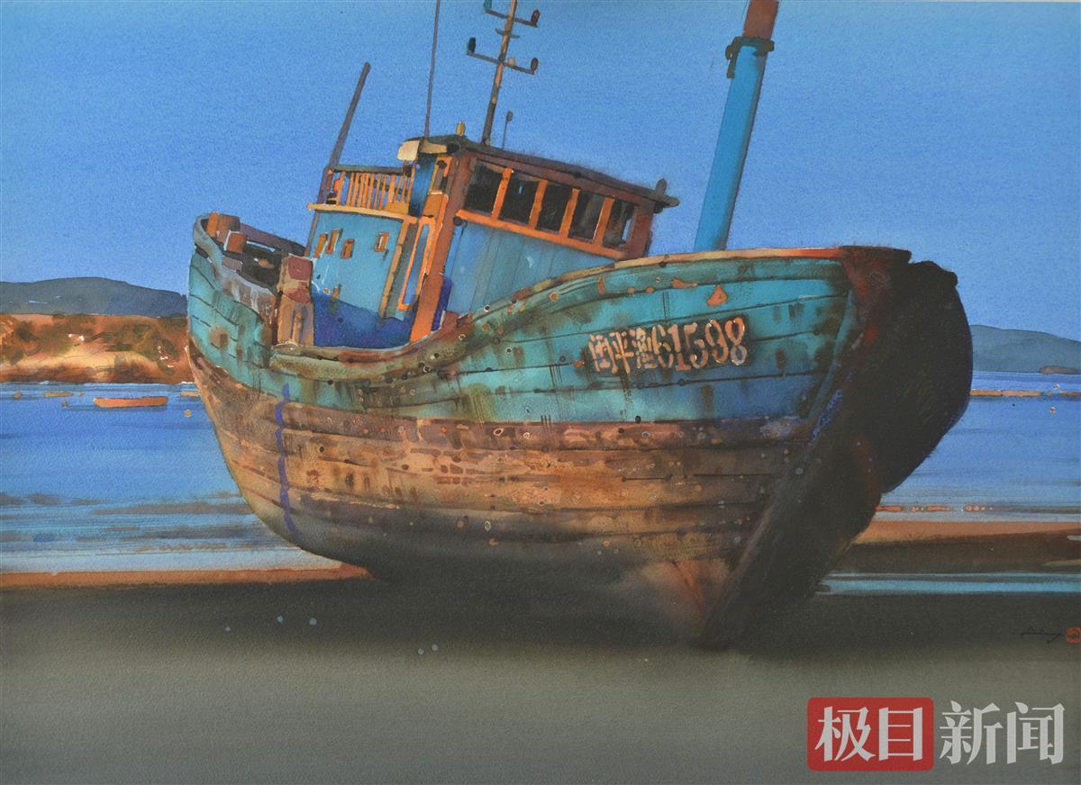 船系列是我的主打。很多年前我去過福建、山東的一些沿海城市,對(duì)港口碼頭上的各種船印象深刻。我覺得船和碼頭,都很貼近于水彩,用水彩表現(xiàn)船只,是非常合適的,很能體現(xiàn)船與水的關(guān)系,體現(xiàn)水彩的韻味。船系列在全國(guó)獲得了一些獎(jiǎng),我還是很喜歡畫船和水的,包括港口、碼頭,以后也將繼續(xù)畫下去。第二個(gè)系列是花語(yǔ),也就是花卉。