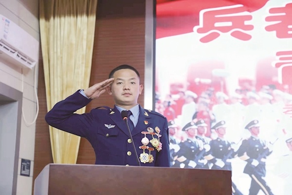 連舒暢在征兵啟動儀式上再次敬軍禮。受訪者供圖