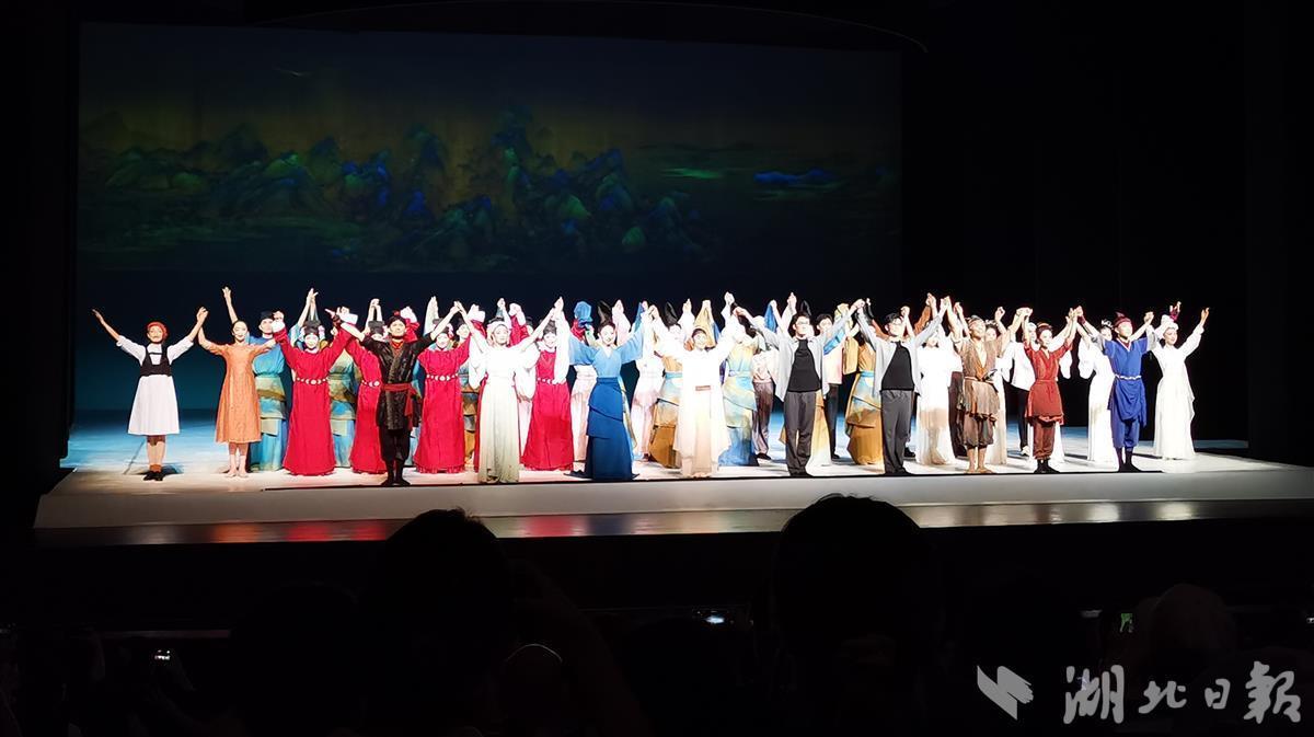“青綠千載,山河無垠”。演出結束,在江城觀眾經久不息的掌聲中,全體演員再三謝幕,現場氣氛熱烈感人。“確實太美了!”觀眾楊女士說,整場演出讓一幅古畫在舞臺上變得鮮活了起來,古典之美震撼人心。