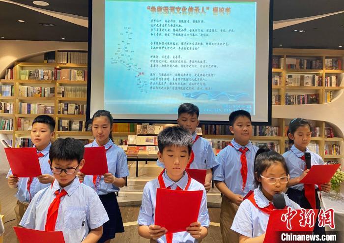 7月2日,揚(yáng)州市梅嶺小學(xué)8名小學(xué)生發(fā)出《爭(zhēng)做運(yùn)河文化傳承人》倡議。 崔佳明 攝