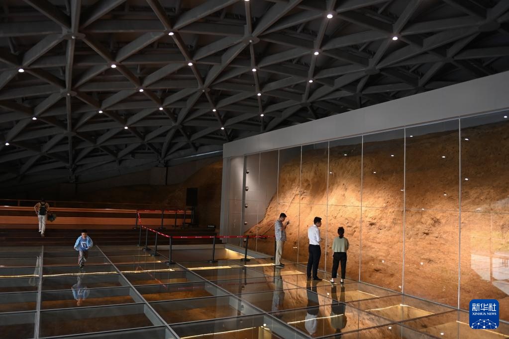 7月6日,觀眾在老虎嶺水壩遺址展示館內參觀沙袋覆土回填保護區。