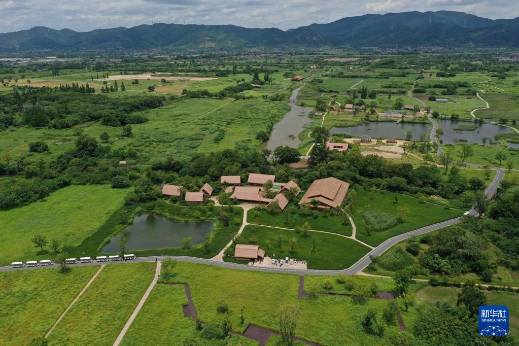7月6日拍攝的良渚古城遺址公園(無人機照片)。