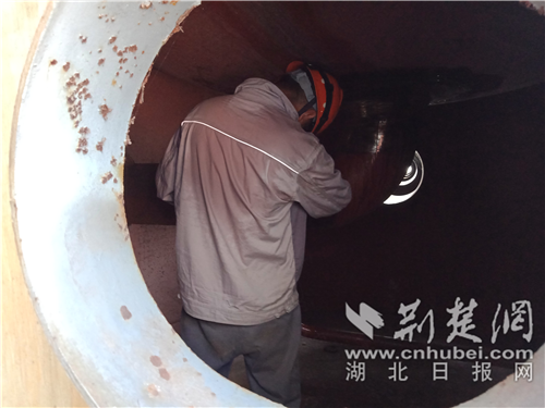 在檢驗現場,檢驗員們頭戴厚重的安全帽,身著悶熱的工作服,在烈日的炙烤下,不停穿梭于各種需入罐的檢驗設備間。罐內溫度高達50多度,空間狹小、密不透風,且含有大量粉塵。“一進罐子里,還沒開始工作,汗水就把我衣服浸濕了。最多45分鐘就要更換一次檢驗人員,不然容易中暑。”檢驗員劉明偉說道。