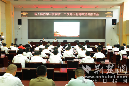 荊楚網(湖北日報網)訊 (記者胡文勇 通訊員王鈺)7月15日下午,湖北省人防辦舉辦學習貫徹湖北省第十二次黨代會精神宣講報告會,湖北省委宣講團成員、湖北省民政廳廳長陳昌宏作專題宣講,湖北省人防辦黨組書記、主任許曉金主持會議。