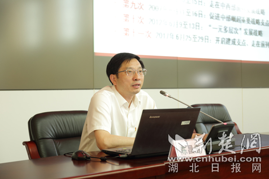 陳昌宏以“奮力建設全國構建新發展格局先行區”為主題,分別從建設全國構建新發展格局先行區的堅實基礎、有利條件、科學指引、主要目標、路徑舉措、堅強保障等六個方面,全面深入準確地解讀了湖北省第十二次黨代會的核心要義、豐富內涵和精神實質。