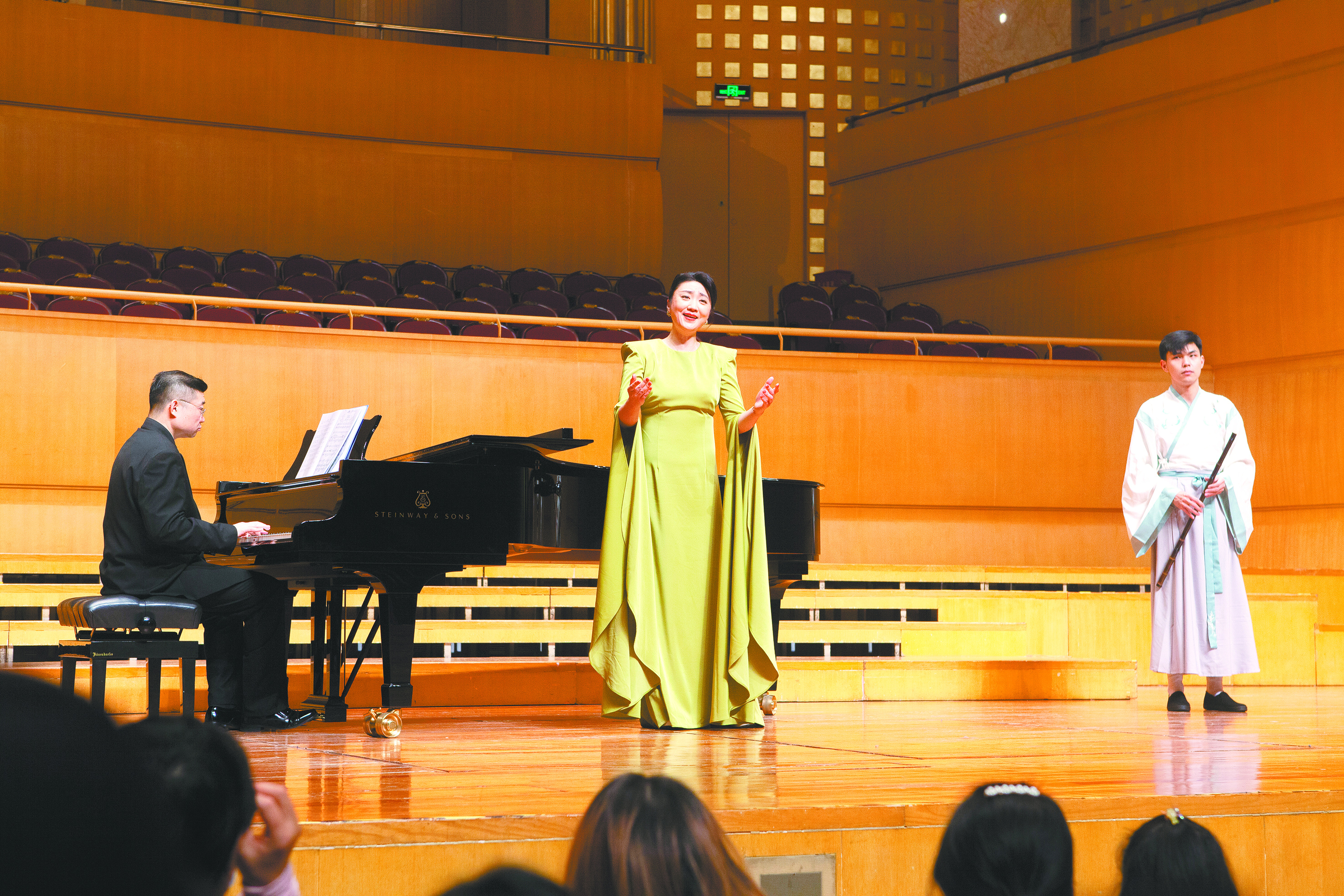 朱佳莉直言,學聲樂不是為了當“大明星”,畢竟在社交媒體發達的時代,“開直播唱‘神曲’可能更容易走紅”。她的學生大都是從小學唱歌,能堅持到研究生階段,必然是充滿熱愛,而她也會特別守護這些藝術的小苗。“有個孩子的嗓音條件并不出眾,但特別執著,一心想唱歌,最后真的唱出來了——我教他的時候,他唱著唱著,聲音出來了一塊,你仔細聽,唱得還挺有味道。這個學生現在是音樂劇演員,在全球各地演出。”朱佳莉感慨,很多人認為搞藝術必須有天賦,但天賦的顯露可能像這個學生一樣,在后天的努力和超強意志力的推動下迸發。