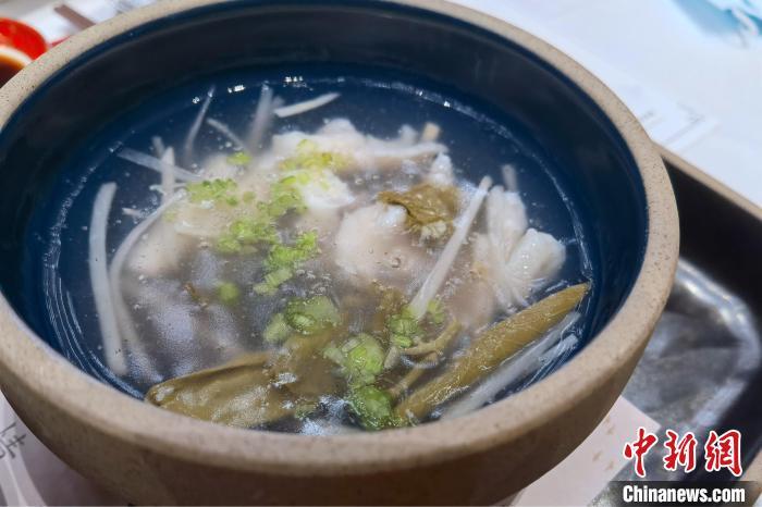 “玉帶羹”為莼菜與筍絲同羹,清鮮可口。 孫虹 攝