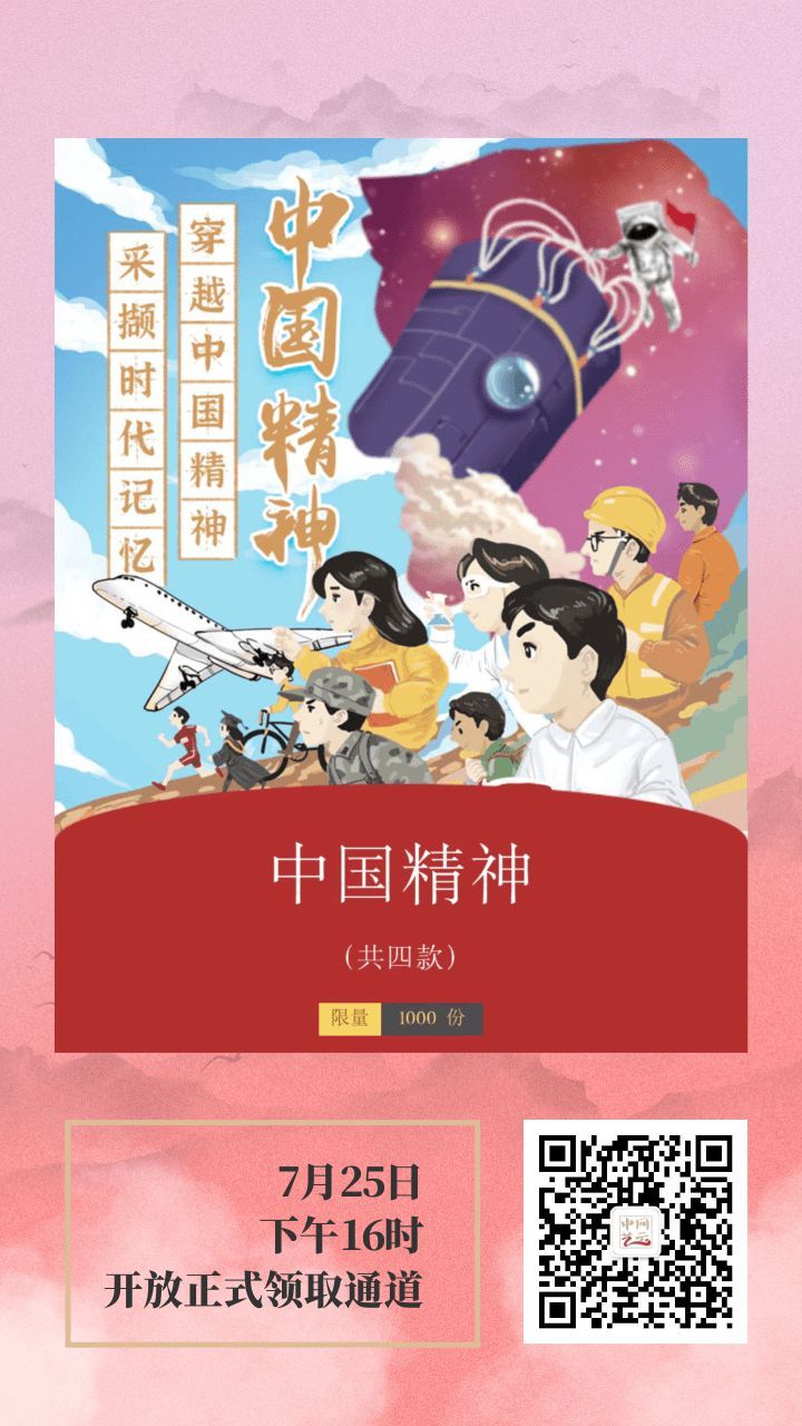 7月25日下午16時,中國網旗下中網藝云數字藏品平臺發布上線首批藏品并將開放正式領取通道,大眾通過中網藝云線上渠道可對《中國精神》系列藏品進行免費領取。本期藏品總數量1000份,共四款,全部用于免費發行。其中歷史主動精神400份、首創精神300份、航空強國精神200份、抗疫精神100份,采取“盲盒玩法”隨機獲取。