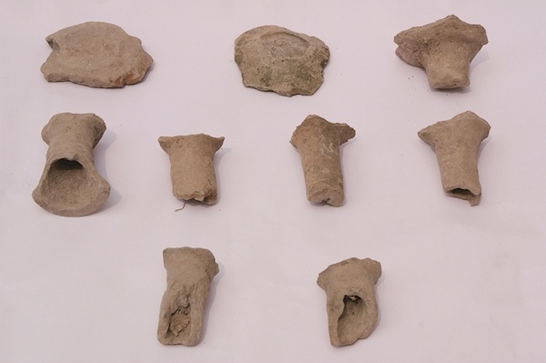 考古發掘過程中,考古人員在臺地斷面上可見文化層和紅燒土,臺地內可見較多的泥質灰陶片、泥質紅陶片,紋飾有素面、繩紋等,可辨器形有豆、罐、瓦等。