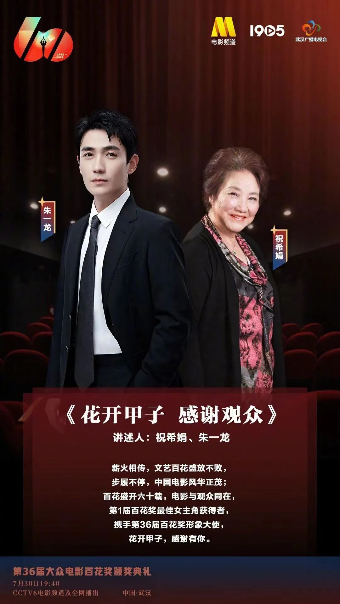 武漢籍演員、第36屆大眾電影百花獎(jiǎng)形象大使朱一龍將與第一屆百花獎(jiǎng)最佳女主角得主祝希娟一起,講述《花開甲子 感謝觀眾》,為走過60年芳華的百花獎(jiǎng)點(diǎn)題。