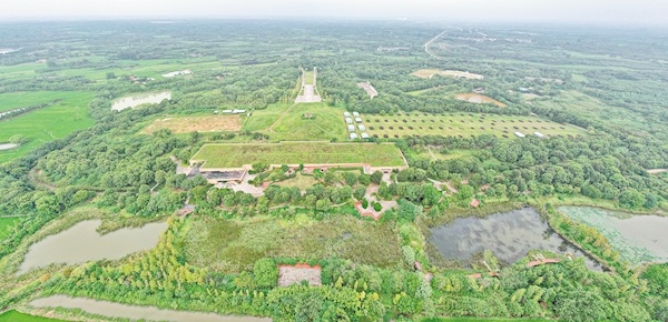 鳥瞰楚王車馬陣景區(qū)(熊家冢國家考古遺址公園)。(湖北日報全媒記者 劉曙松 攝)