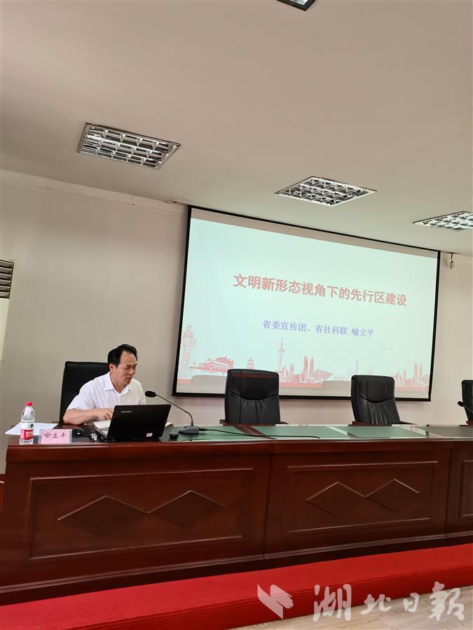 報(bào)告會(huì)上,喻立平以《文明新形態(tài)視角下的先行區(qū)建設(shè)》為題,從文明視角中的世界大變局、文明新形態(tài)與湖北發(fā)展、文明新形態(tài)與湖北治理、打造湖北文明高地四個(gè)方面對(duì)省第十二次黨代會(huì)報(bào)告進(jìn)行了深入闡釋和解讀,結(jié)合習(xí)近平總書記視察湖北重要講話精神,圍繞立足新發(fā)展階段、貫徹新發(fā)展理念、構(gòu)建新發(fā)展格局這條主線,深刻把握了省第十二次黨代會(huì)的重要意義和豐富內(nèi)涵,生動(dòng)闡釋了省第十二次黨代會(huì)提出的重大任務(wù)和目標(biāo)安排。報(bào)告切合電影集團(tuán)實(shí)際,對(duì)理解和把握習(xí)近平總書記考察湖北重要講話精神,推動(dòng)省第十二次黨代會(huì)精神在電影集團(tuán)落地落實(shí)非常有幫助。